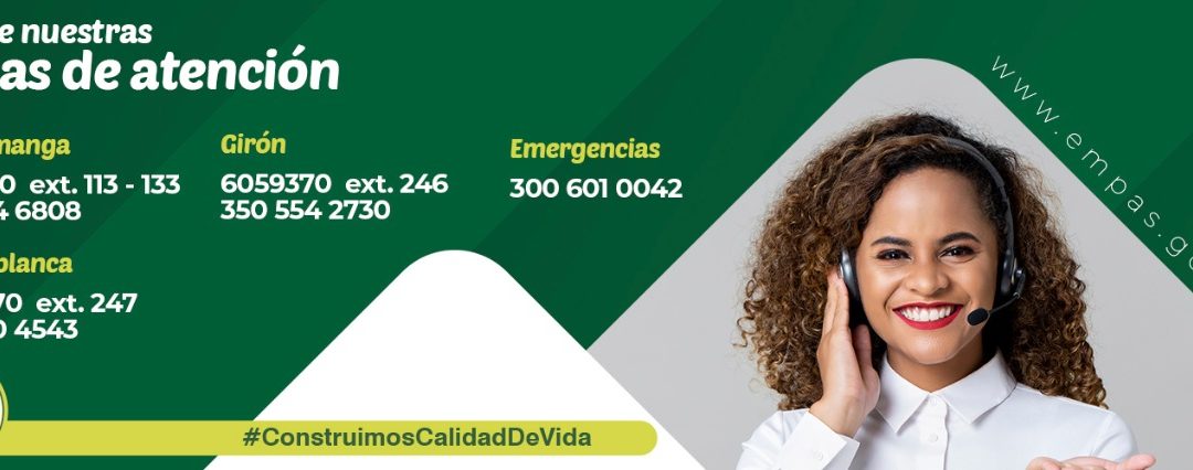 Inicio » Category: "Obras" La Empresa Pública de Alcantarillado de Santander, EMPAS S.A., le reitera a toda la comunidad del área del influencia: Bucaramanga, Floridablanca y Girón, que los canales para instaurar Peticiones Quejas o Reclamos. PQRs,...